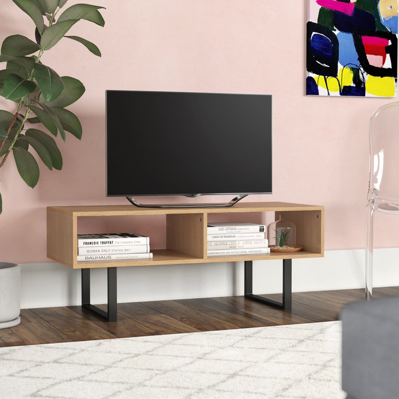 Add this TV stand to your home or office for stylish organization! Designed with modern, simple appeal, this TV stand would fit perfectly as a decorative piece in any room.