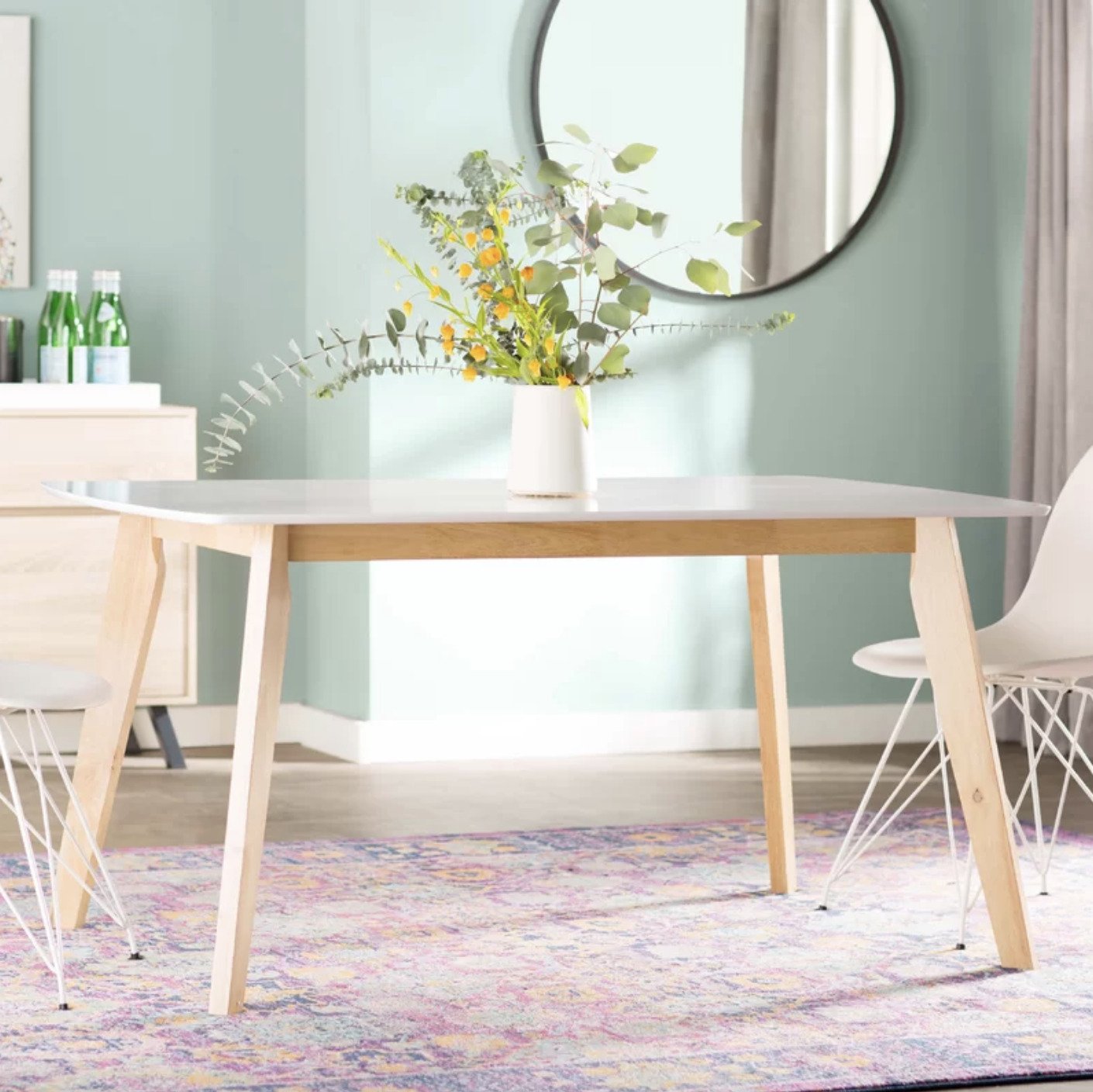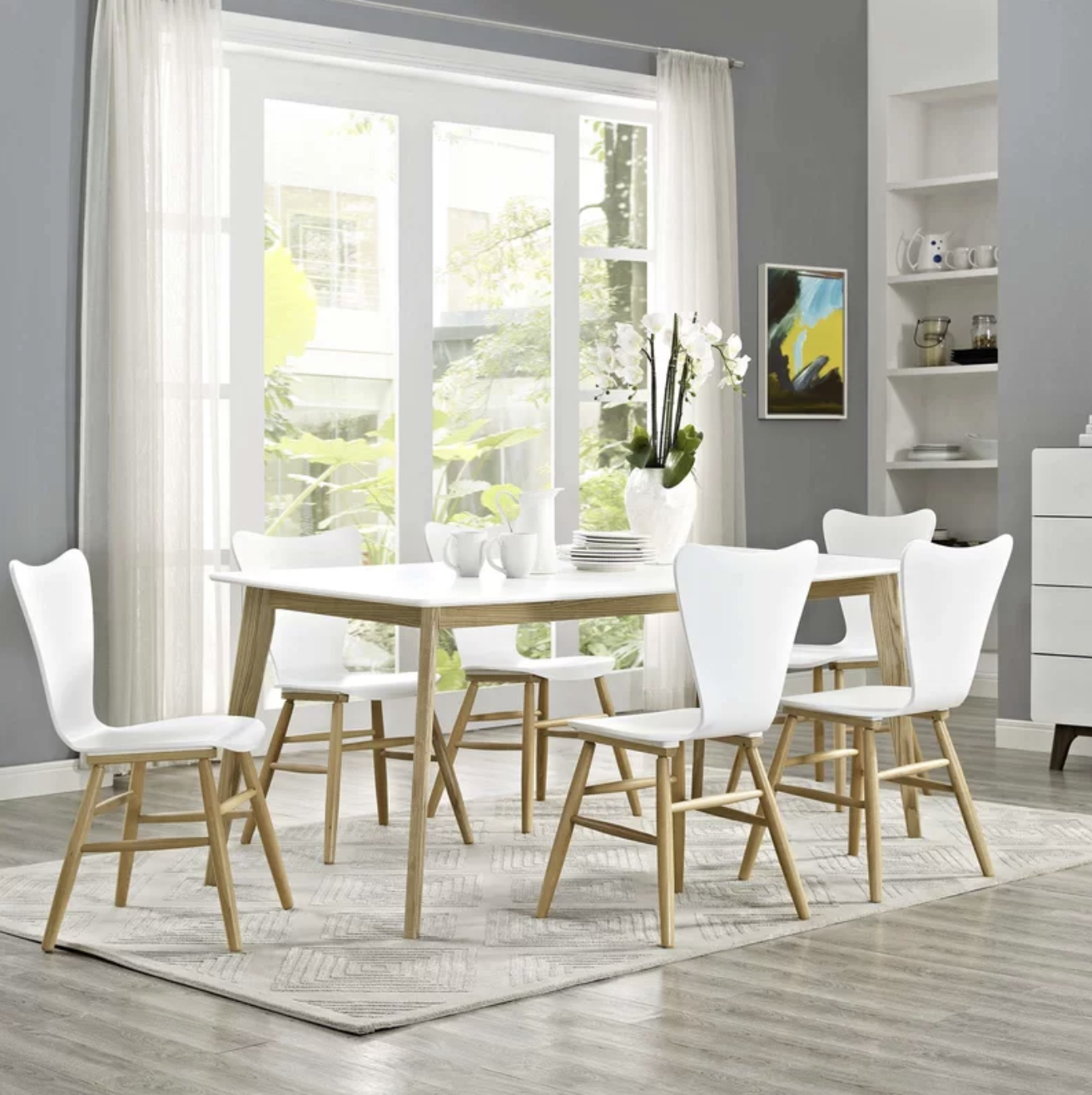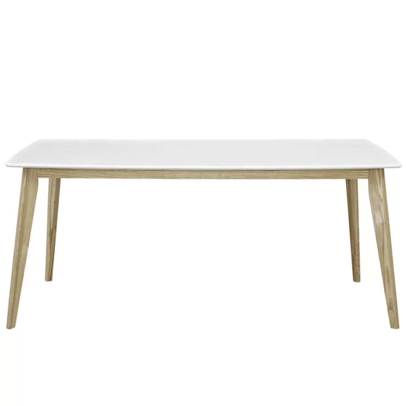 This is a solid ashwood legged dining table with a smooth white lacquer top and a minimalist vibe perfect for the contemporary dining room. Useful both as a dining table and writing desk, this collection is the perfect addition to the modern home.