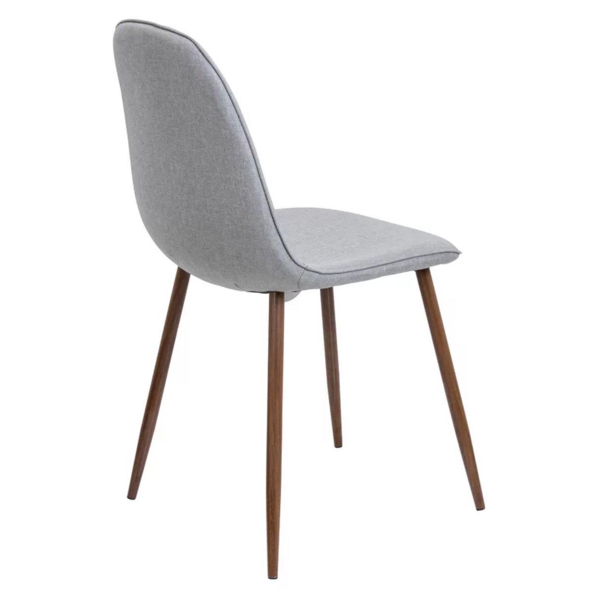 Craft a casual dining ensemble or build an upscale look with this stylish dining chair. Showcasing a chic back, its frame is founded on four slanted legs. A versatile addition to your space, it is finished in a sleek solid hue with darker distressed details.