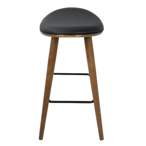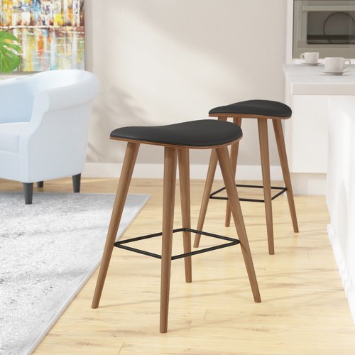 Give your kitchen a modern makeover with this backless bar stool, a saddle-style seat that brings function and midcentury flair into the heart of your home. Crafted of solid beech and manufactured wood, this walnut-finished piece features tapered legs and a faux leather seat in a solid neutral tone that blends easily into your existing arrangement.