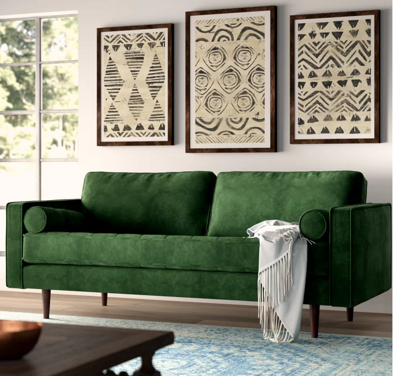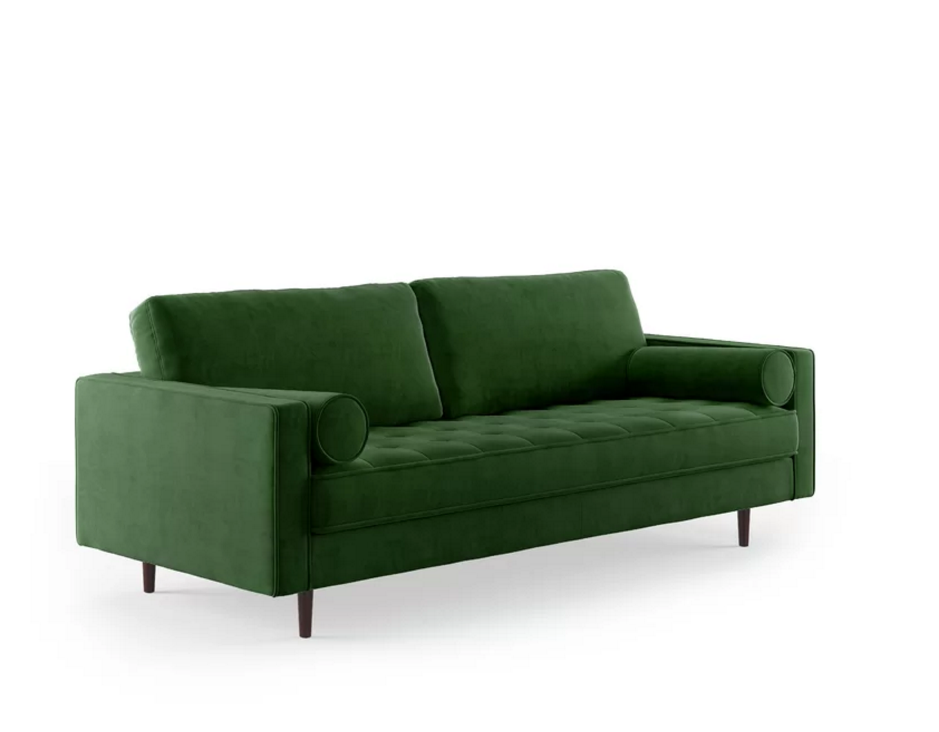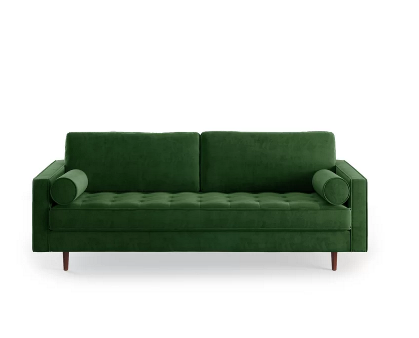 Looking for a boho-chic addition to your living room seating arrangement? Look no further than this sofa! Crafted from solid wood, it stands atop thin legs and features a track-arm design wrapped in polyester velvet upholstery for a textured appearance, relying on button-tufted details for even more visual appeal. Web suspension offers you and your guests a comfortable place to sit, whether you’re chatting over coffee or enjoying a movie marathon.