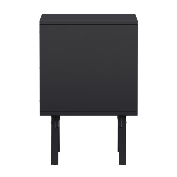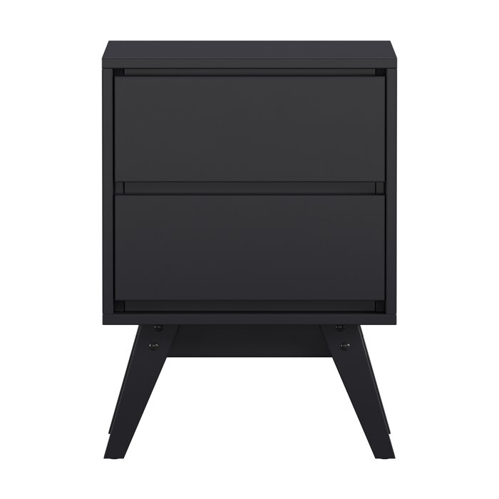 Build your bedside ensemble from the ground up with this piece, offering the perfect perch for a gleaming lamp and storage space inside for nighttime essentials. Made from manufactured wood, its frame is styled after the mid-century with angled legs and a two-tone finish of brown and black.